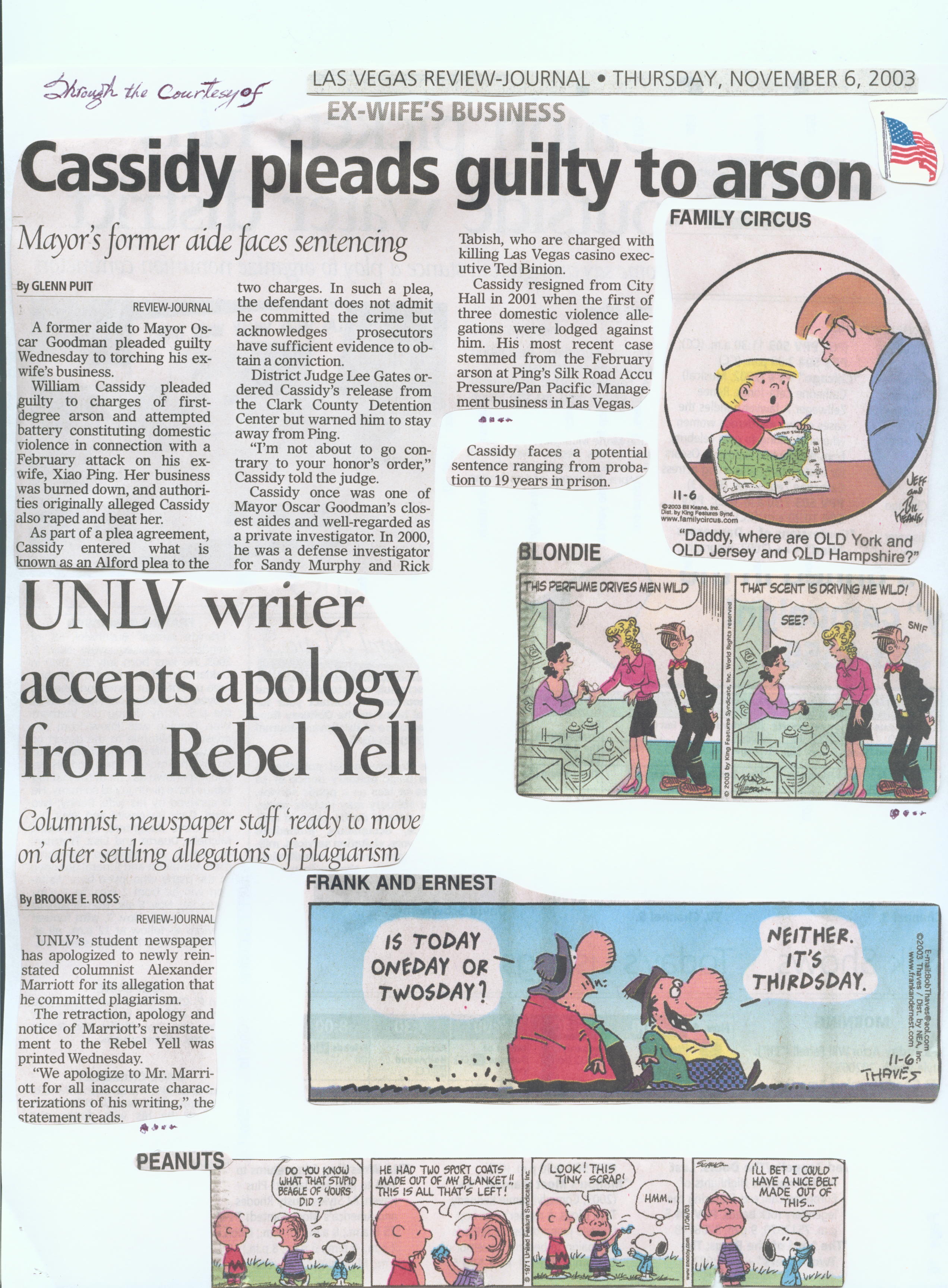 Newsbrief ***** November 4, 2003 ***** ### Third Edition Washington Business and Technology Institute http://communitylink.reviewjournal.com/lvrj/wbtiAdvisory Board: Governor Kenny Guinn, Chairman; U. S. Senators Harry Reid and John Ensign, Vice Chairmen; U. S. Representatives Jmaes Gibbons and Shelley Berkley, and Las Vegas Mayor Oscar Goodman, Executive Directors. U. S. Secretary of Labor Elaine Chao Chairperson Dr. Tony T. Lei President Dr. William N. Thompson Director of Public Administration Institution Dr. E. Lee Bernick and Dr. G. Keong Leong Deans of Graduate School of Business and Public Administration Dr. Sue Fawn Chung Director of Culture Institution Justice of the Supreme Court William Maupin, Attorney General Brian Sandoval, and Disrict Judge Stewart Bell, Honorary Co - Chair of of the Advisory Board of Clark County District Attorney and Policy Civil Commission (CCDAPCC) District Attorney David Roger and Sheriff William Young Co - Chair of CCDAPCC (702) 255-9058 -------------------------------------------------------------------------------------------------------------- | |