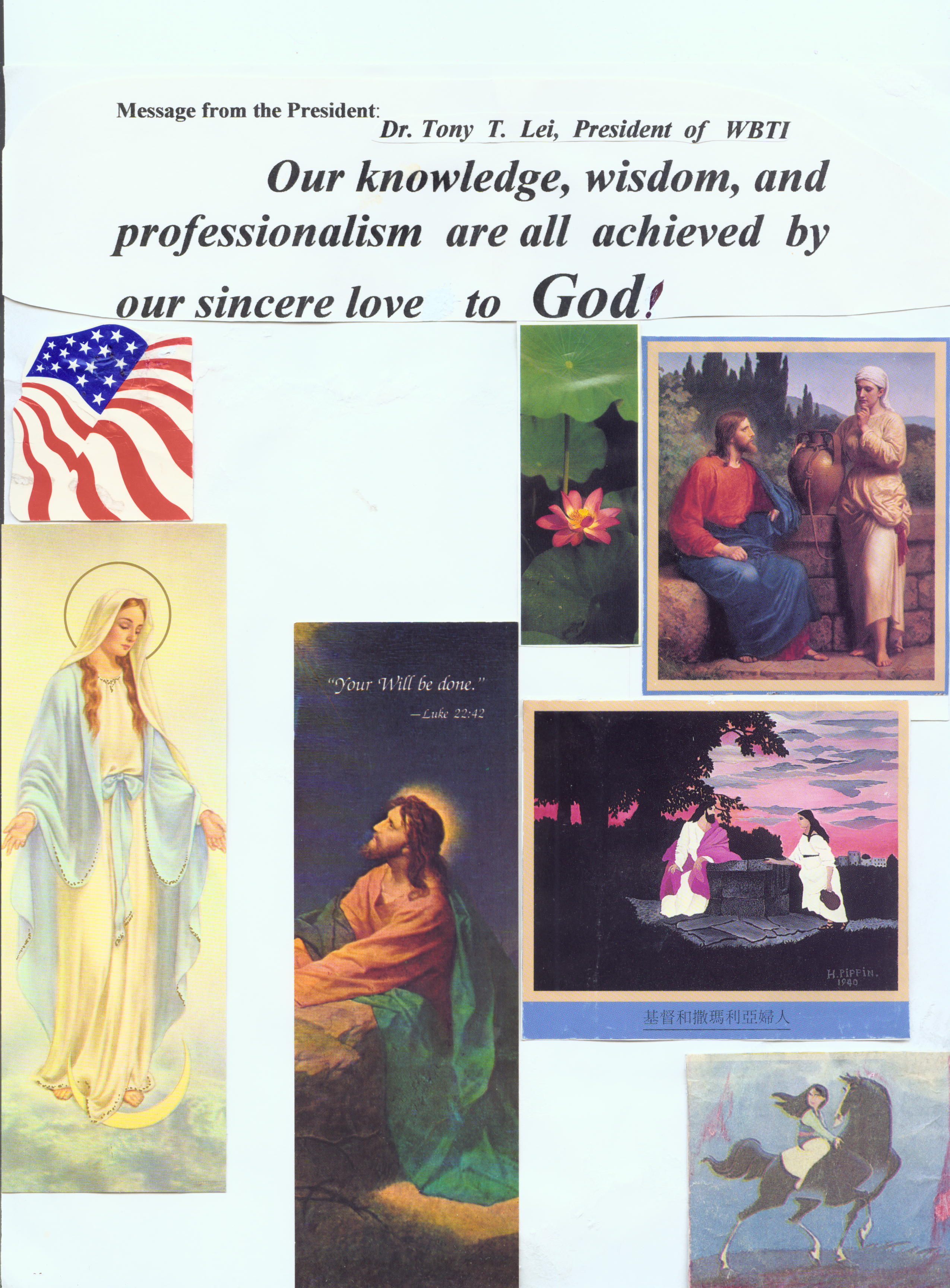 WBTI President's 2003 New Year Message January 1, 2003We need to do our best to present ourselves to God as we've been approved. As a sincere American coolie (hardworker), I need to know God's Words so I would not be ashamed to correctly handle His Word of truth. By doing what is good, we may remind the people to be subject to officials and authorities. We need to remind people also that we are ready to do whatever is good through righteousness and obedience to God's Words. We need to unite all our friends and groups to slander no one, to be peaceable and considerate, and to show true humility toward all our people. The significant thing we need to do this year is to unite and put all our wisdom and effort to the right direction of improving the quality of life for all our residents and visitors in Nevada. 1111111111111111111111111111111111111111111111111111111111111 66666666666666666666666666666666666666666666666666666666666666666666 888888888888888888888888888888888888888888888888888888888888888888888888888888 | |