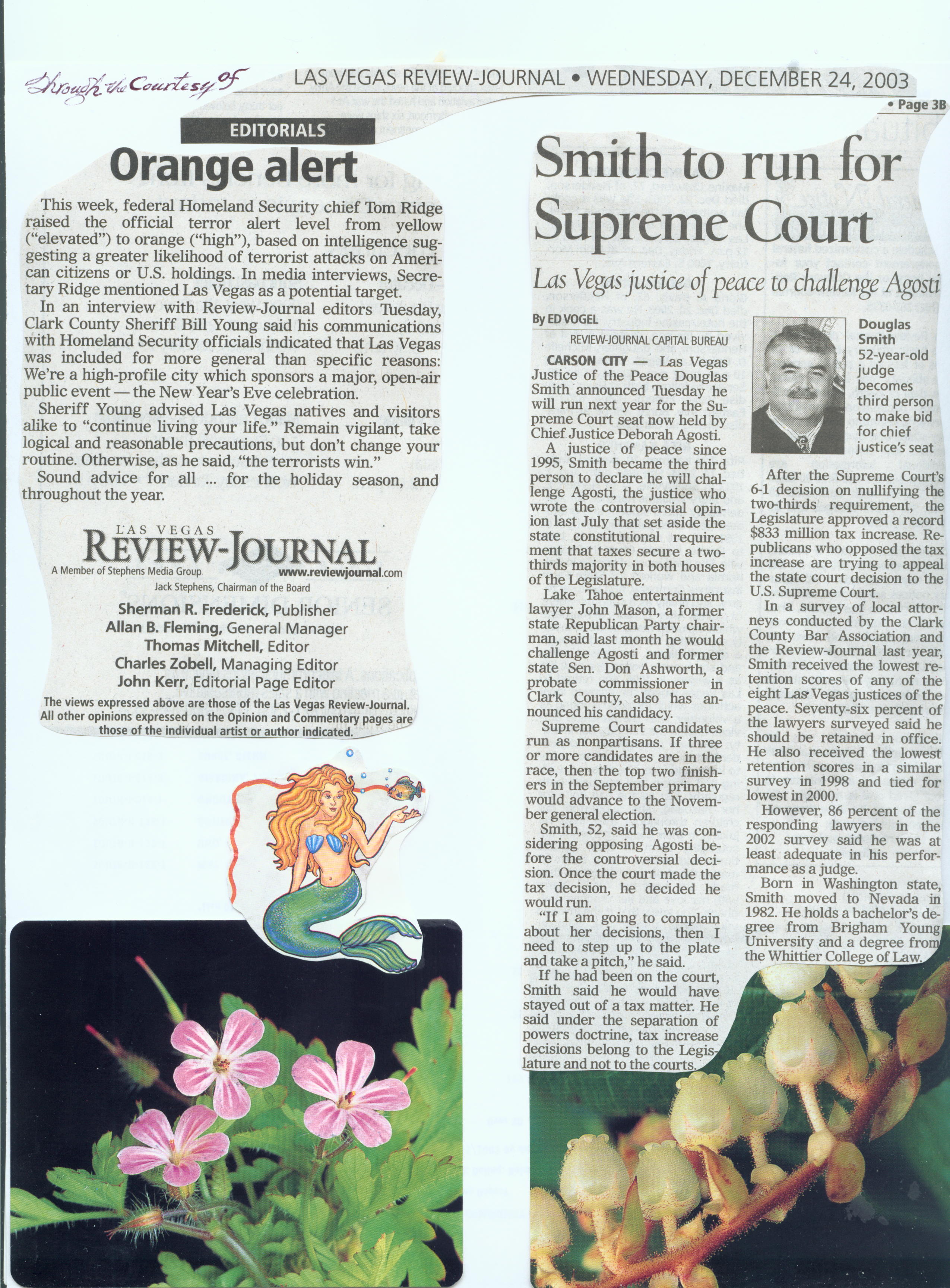 Newsbrief *****18:37 p.m. Monday, December 22, 2003 ***** # First Edition Washington Business and Technology Institute http://communitylink.reviewjournal.com/lvrj/wbtiAdvisory Board: Governor Kenny Guinn, Chairman; U. S. Senators Harry Reid and John Ensign, Vice Chairmen; U. S. Representatives James Gibbons and Shelley Berkley, and Las Vegas Mayor Oscar Goodman, Executive Directors. U. S. Secretary of Labor Elaine Chao Chairperson Dr. Tony T. Lei President District Judges Mark R. Denton and Valorie J. Vega Vice Presidents Dr. William N. Thompson Director of Public Administration Institution Dr. E. Lee Bernick and Dr. G. Keong Leong Deans of Graduate School of Business and Public Administration Dr. Sue Fawn Chung Director of Culture Institution Justice of the Supreme Court William Maupin, Attorney General Brian Sandoval, and District Judge Stewart Bell, Honorary Chairmen of Clark County District Attorney and Police Civil Commission (CCDAPCC) District Attorney David Roger and Sheriff Bill Young Chairmen of CCDAPCC (702) 255-9058 ------------------------------------------------------------------------------------------------- Season's Greetings from Chancellor Dr. Charles Runnels and Mrs. Dr. Norvel Young of Pepperdine University By Tiffany Chang The mails for us to pick up used to be late on Monday, and thus we received the mails at about 5:00 p.m. this afternoon. The following two mails are the most important ones of them: 1. Season's Greetings from Chancellor Dr. Charles Runnels To: Dr. Tony Tung-tien Lei President Washington Business and Technology Institute This card has been designed creatively! On the cover, it is the Heroes Garden. The Garden was opened to the public on September 11, 2003. It is a quite place of reflection dedicated to the heroes of 9-11 and all those who live heroic lives. The photo was taken by Ron Hall with special treatment by Keith Lungwitz. The inside photo is of the Runnels family. The Runnels family gathered at the stunning new Drescher Graduate Campus at Malibu, which opened in fall 2003. Pictured left to right are Chase, Susan, Duke, Ginger, Jessica, Megan, Alexander, Christopher, Caitlin, Jasmine, and Tyler. Amy Jo and Charles are seated in front. *1 The photo was taken by Alex Washington. Great is the Message inside: There is a garden that brings to mind faces of Americans, courageous souls. It can remind us, too, of a heroic season: as the old, with both victories and hardships, bows to the new, with resolves to reach high, wider, deeper. And it can remind us of the coming of The Great Hero, from heaven to earth, to show us the most beautiful face of courage, forgiveness, and love. May this be your best year ever. Charles (Signature.) ---------------------------------------------------------- 2. Christmas Card from Mrs. Dr. Norvel Young To: Dr. Tony Tung-tien Lei President Washington Business and Technology Institute The cover is a photo of colorful building. Mrs. Young states the following for the cover: "I'm delighted to share the news of a University fund-raising effort to name the new building on the Drescher Graduate Campus that houses the Graduate School of Education and Psychology and the Center for the Family: The M. Norvel and Helen M. Young Center. Norvel would be so pleased!" *2 Inside the first page presents the words of the Holy Bible: Glory to God in the highest and on earth peace to men on whom his favour rests. --- Luke 2:14. Inside the second page are good words from Mrs. Helen M. Young: Just when we think our blessings are full, God enters and blesses us with new beauties, new friends, and new horizons. He is forever the God of hope, joy, and peace. Have a blessed season! Helen (Signature.) Helen M. Young ---------------------------------------------------------------- References *1. Runnels, Charles. "Season's Greetings!" (December, 2003), Chancellor's Office , Pepperdine University. *2. Young, Helen. "Season's Greeting!" (December, 2003), House on Tiner Court, Pepperdine University. 77777777777777777777777777777777777 777777777777777777777777777777777777777777777777777 777777777777777777777777777777777777777777777777777777777777777777777777777777 ****************************************************************************** | | | Go To Page: [1][2] 3 [4][5][6][7][8][9][10][11][12][13][14][15][16][17][18][19][20][21][22][23][24][25][26][27][28] | |