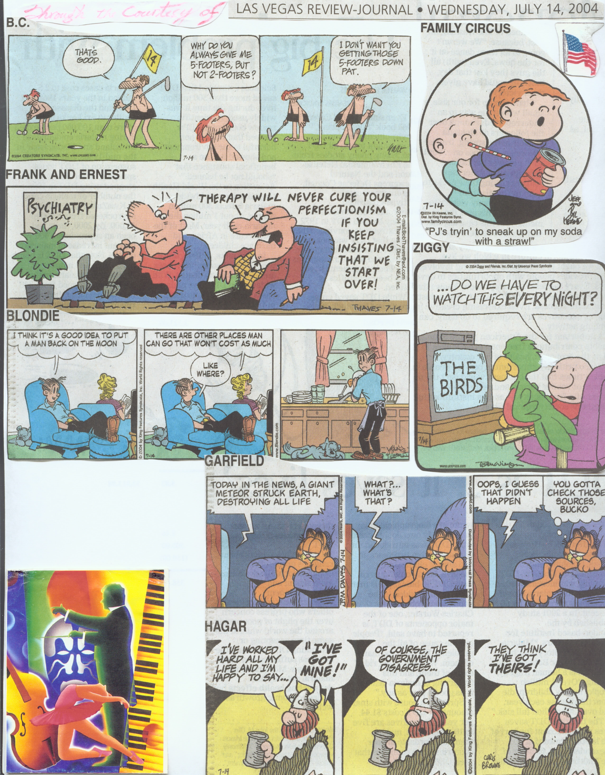 071704 ---The sky is beautiful in our cartoons garden... "A book is a success when people who haven't read it pretend they have." --- Los Angeles Times Syndicate |