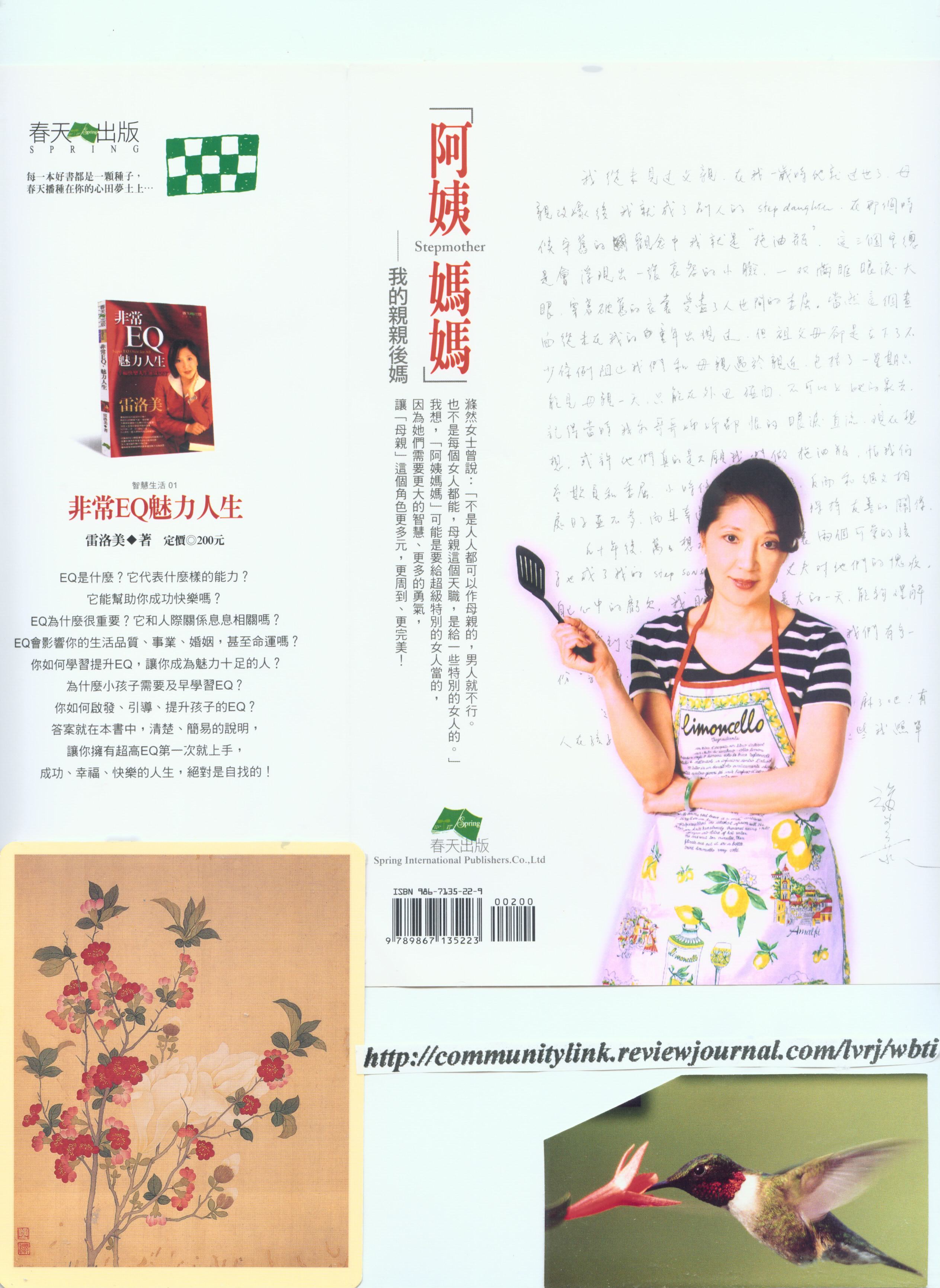 An useful and wonderful book on emotional intelligence A book about Increasing Your Potential For Success By Tiffany ChangThe following information abou E. Q. was found by searching "雷洛美" from the Google.com on June 22, 2005. Blessed is the man who trusts in the Lord, whose confidence is in him. He will be like a tree planted by the water that sends out its roots by the stream. It does not fear when heat comes; its leaves are always green. It has no worries in a year of drought and never fails to bear fruit. ---Jeremiah 17:7-8 of the Bible "We all need to smile every once in a while," said the "IT'S KINDA FUNNY". From the Qian of "I Ching," people may learn that 'The sky is naturally auspicious and strong; it is good for predicting the future." A compliment or encouragement is verbal sunshine. We are pleased to quote the following three short but meaningful ones: ***** No matter how busy you are, you must take time to make other person feel important. ---Mary Kay Ash ***** There is no more noble occupation in the world than to assist another human being---to help someone succeed. ---Alan Loy McGinnis ***** There are two things people want more than sex and money ...recognition and praise. ---Mary Kay Ash Becky is the former President and Member of the School Board for Unified School District of San Morino, California. Ms. Becky Lei (雷洛美) is now the Chairperson of E. Q. Research Committee (EQRC) of Washington Business and Technology Institute (WBTI): 雷洛美曾任美國加州聖瑪利諾市的學區教育委員會主席﹐現任洛杉磯郡教育部指派親子師資培訓的教師﹐華盛頓工商研究院的企業管理公共行政研究所助理教授和EQ研究委員會主席﹐真愛家庭協會特約講員﹐恩泉輔導中心﹐聖瑪利諾華人協會顧問和南加州華裔家長教師協會榮譽顧問。[華盛頓工商技术研究院] 非常EQ,魅力人生 ("Super EQ Once for All")*1 作者: 雷洛美/著 出版社:春天出版社 出版日期:2003 年 02 月 24 日 語言別:繁體中文 定價:??? 元 ?惠價:9 折 ??? 元 本商品單次?買 10 本 ???元 (8折) 內容?介 EQ是什麼?它代表什麼樣的能力?它能幫助你成功快樂嗎? EQ為什麼很重要?它和人際關係息息相關嗎? EQ會影?你的生活品質、事業、婚姻,甚至命運嗎? 你如何學?提升EQ,?你成為魅力十足的人? 為什麼小孩子需要及早學?EQ? 你如何啟發、引導、提升孩子的EQ? 答案就在本書中,清楚、?易的說明,?你擁有超高EQ第一次就上手,成功、幸福、快樂的人生,絕對是自找的!*2 A special flier has been designed by WBTI creatively with colorful paintings for the above book. Interesting readers may visit it on the section of 'Becky Ung, E. Q. Chairperson". It was post on July, 30, 2004 [073004] at the second page of this Section. "Dear Dr. and Mrs. Lei, Thank you for your support and guidance," wrote Becky Ung inside the cover page of her book entitled "Super EQ Once for All". It was published by Spring International Publishers Co., Ltd. on February 24, 2003.*3 --------------------------------------------- References *1. 雷洛美. '非常EQ,魅力人生,' "A search of '雷洛美' on the Google.com," (August 14, 2005), U. S. A.: Google.com. *2. Ibid. *3. Reviewjournal.com. 'Super EQ Once for All,' "Section of 'Becky Ung, E. Q. Chairperson' of the WBTI website," (June 22, 2005), Las Vegas, Nevada: WBTI. 77777777777777 88888888888888888888888888 888888888888888888888888888888888888888888888 **************************************************** | |