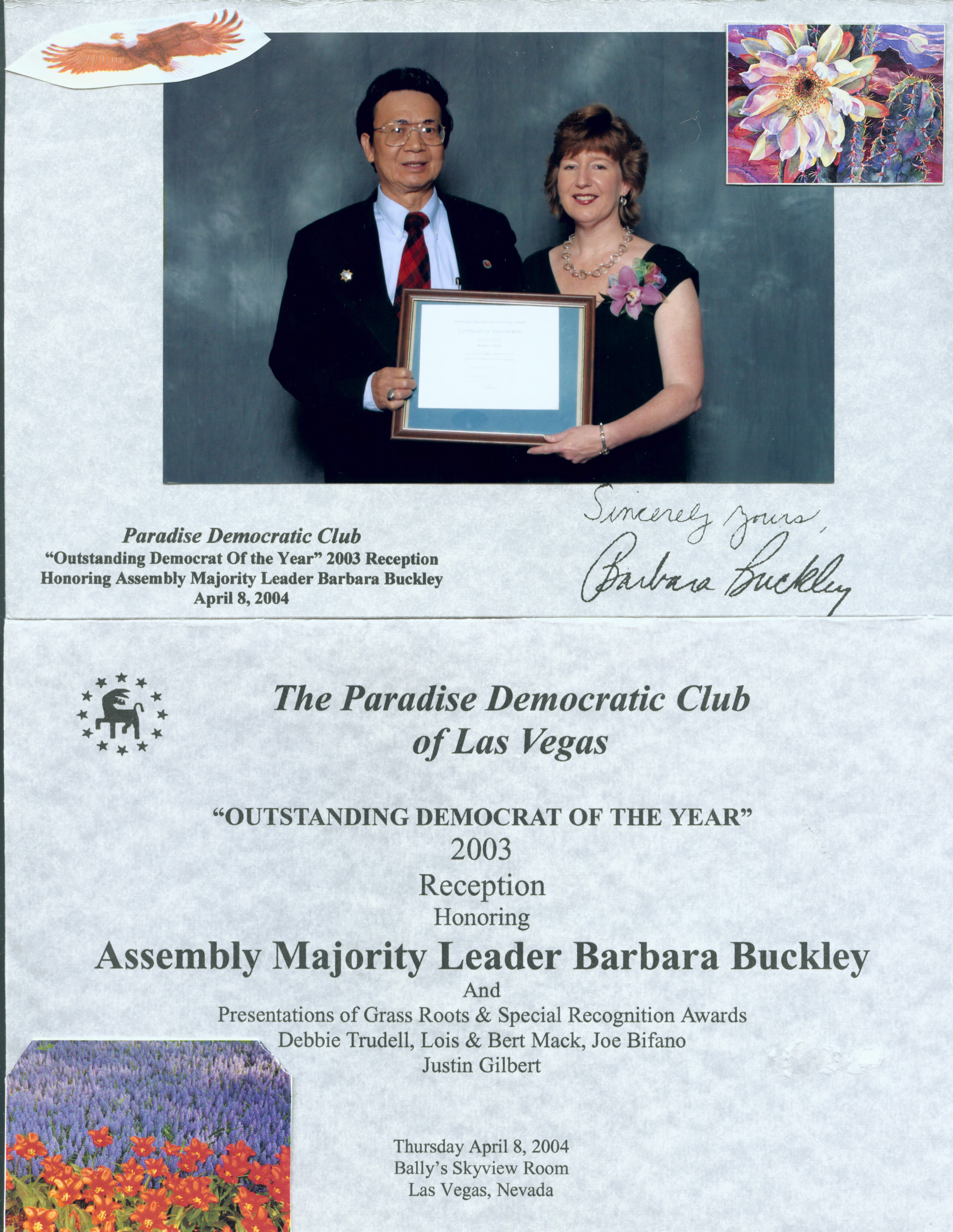 LVRJ/wbti Barbara Buckley has been appointed as an Associate Professor of the GSBA of WBTI Nevada. The left center picture shows her certificate of appointment presented by President Dr. Tony T. Lei during the celebrating ceremony! The above information has been declared by Dr. John Z. Wang, Speaker of Washington Business and Technology Institute (WBTI),in Las vegas, Nevada, USA! --------------------- New content and events are listed below! There are 3 changes at Washington Business and Technology Institute since Tuesday February 18 +++++Postings: (Business & Administration (PPAA Forum 21)) Good mrning dear Readers. This is Wednesday, Feb. 19, 2014! (posted Tuesday February 18th at 11:43 AM) new (Business & Administration (PPAA Forum 21)) Good morning dear Readers. This is Tuesday, February 18, 2014! (changed Wednesday February 19th at 12:14 AM) updated (Business & Administration (PPAA Forum 21)) [021914-0617]; (021814-0617); {021714-0617}Good morning dear Readers. This is Monday, February 17, 2014! (changed Tuesday February 18th at 11:30 AM) updated This service is brought to you by: Community Link Thanks for visiting our online community! -------------------- LVRJ/wbti: 旺報觀點-繪兩岸前景 習總搏感情! *****...習近平18日在連習會上的談話,對於兩岸關係,他是動之以情。習近平首先訴諸了「兩岸一家親」,把台灣夢和中國夢連在一起,因此他強調了兩岸的共同「血脈、文化、連結、願景」、中國夢與台灣的前途是息息相關、中國夢是兩岸共同的夢。...但習近平說「兩岸流的是中華民族的血」、「精神上堅守的是中華民族的魂」,「中華民族」是現階段兩岸之間的最大公約數。在這個前提下,雖然習近平重申了張志軍的話,間接表示希望國民黨繼續執政,但也向民進黨喊話,不管過去民進黨有什麼主張,但只要願意參與推動兩岸關係和平發展,大陸都歡迎。雖然是國共對話的場合,但習近平的話說得四平八穩,以感情照顧了台灣各界的觀感。--wonwon.com (旺報 宋秉忠 2014年02月19日 04:10) & LVRJ/wbti ------------------- 073103a *****Cooperated we'll advance Nevada good for business and living! by Theresa Malone and Tiffany Chang According to Las Vegas Review-Journal on July 16, 2002, Mandalay Resort Group executives are apparently committed to an effort to persuade Chinese and U. S. government leaders to loan a pair of giant pandas to Mandalay Bay for at least ten years. The price tag: a minimum of $100 million, or 10 million annually. The money would go to the Chinese government with an additional $10 million possibly set aside to build housing for the pandas. "I write today to bring to your attention an exciting project in my home state of 071902 Nevada that will greatly enhance the city of Las Vegas, the relationship between our two countries, and the zoological research community," U. S. Senator Harry Reid wrote the Chinese Ambassador to the United States Li Zhao Xing in December. "If granted this privilege and opportunity, Mandalay will build a multimillion-dollar facility in Las Vegas designed specifically for the pandas with state-of-the-art conservation and research capabilities." Dr. John Wang, Director of Nevada Manufacturing Research Center of UNLV, announced on July 17, 2002, "Four consuls of the Consulate General in San Francisco of the People's Republic of China are coming to visit Dr. Tony Lei, President of Washington Business and Technology Institute (WBTI) on July 20, 2002. A Dinner Party will be held on the Saturday by the Consulate General at the Harbor Palace Seafood Chinese Restaurant for the Chinese Community from Taiwan in Las Vegas leading by Dr. Lei." "We're honored that they've agreed with us to have the Consul General to hold a dinner party with WBTI in meeting our representatives from the State of Nevada in the Washington Scene. The program for the pair of giant pandas will bring us with both value in tourism and education. We'll have the faculty of Public Administration Institution (PAI) of WBTI to advance the pioneering idea of this objective of business and research with a spirit of American entrepreneurship on the basis to promote the cooperation between China and America," said Dr. Lei. The establishment of the relationship between Nevada and Qinghai of China as sister states is contributing significantly to the promotion of cooperation and development of the economic and cultural fortune of the people of this two states . We are exciting to join the effort of this endeavor for improving the quality of life of all our residents and visitors of Nevada! "As a faculty member of Public Administration Institution (PAI) of WBTI,. working together with these intellectuals of the Institute with modern management philosophy, information technology, and dignified professionalism, my talent and knowledge are sharpened and shined by the spirit of institutional entrepreneurship and educational excellence of Dr. Tony Lei. The build of the relationship of sister states will certainly advance the cooperation and development of trade, economy, education, and culture between the friendship of the people of Nevada and Qinghai," said Theresa Malone, elected Member of the Board of Education and Chairperson at a Dinner Party. It was held by Governor Zhao Leji and delegation from Qinghai, China at the Sloan K of Orleans Casino and Hotel at the evening on June 26, 2002 in Las Vegas. "I've joined the faculty of Public Administration Institution of Washington Business and Technology Institute (WBTI) to work with its intellectuals such as Frankie Sue Del Papa, Dina Titus, Nancy Becker, Dr. Roy Adamson, Mark Denton, Valorie Vega, Jennifer Togliatti, Michelle Leavitt, and among others under the leadership of U. S. Senator Harry Reid and Nevada Governor Kenny Guinn with Dr. William Thompson as its Director and Fellow. It's one of our added assets that we have the excellent caliber of