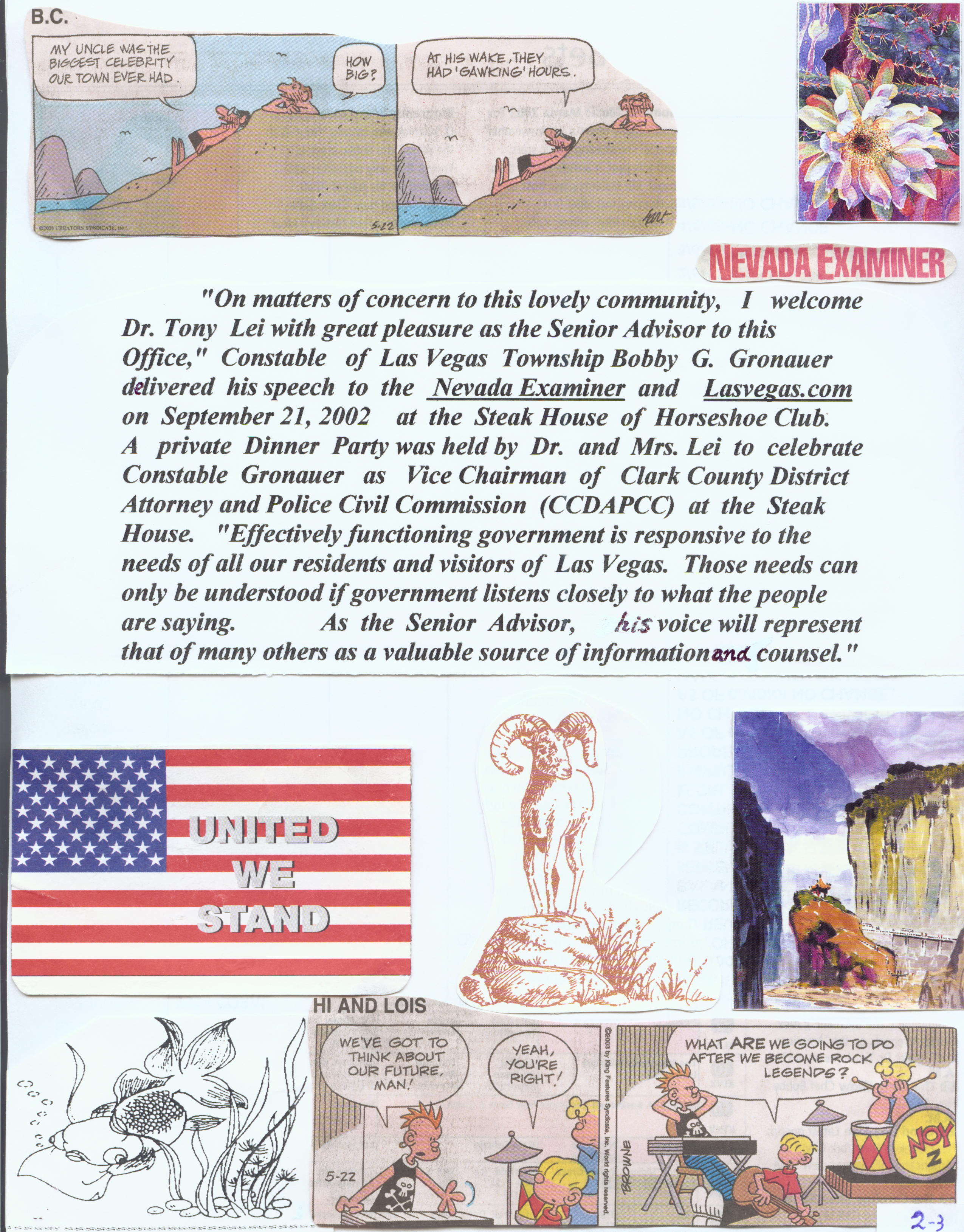 In January 2000, Dr. Tony T. Lei and Dr. William Thompson established the Public Administration Institution (PAI) for WBTI Nevada. It has Dr. Thompson as its Fellow and Director; and Nevada State Senator and Professor of UNLV Dina Titus, Justice of the Supreme Court Nancy Becker, Former Attorney General Frankie Sue Del Papa, District Judges Mark Denton, Valarie Vega, Michelle Leavitt, Jennifer Togliatti, Jessie Walsh, and Dr. Archie Chang as its Fellows. Dr. Tony Lei is also the Honorary President of Great Wall College and Xaimen Straits Foreign Language College. He is the Contributing Editor of "Nevada Examiner" and "reviewjournal.com - WBTI website." He has creatively led WBTI as an non-profit organization dedicated to the encouragement and promotion of academic research, community service, and humane spirit for all our residents and visitors of Nevada.