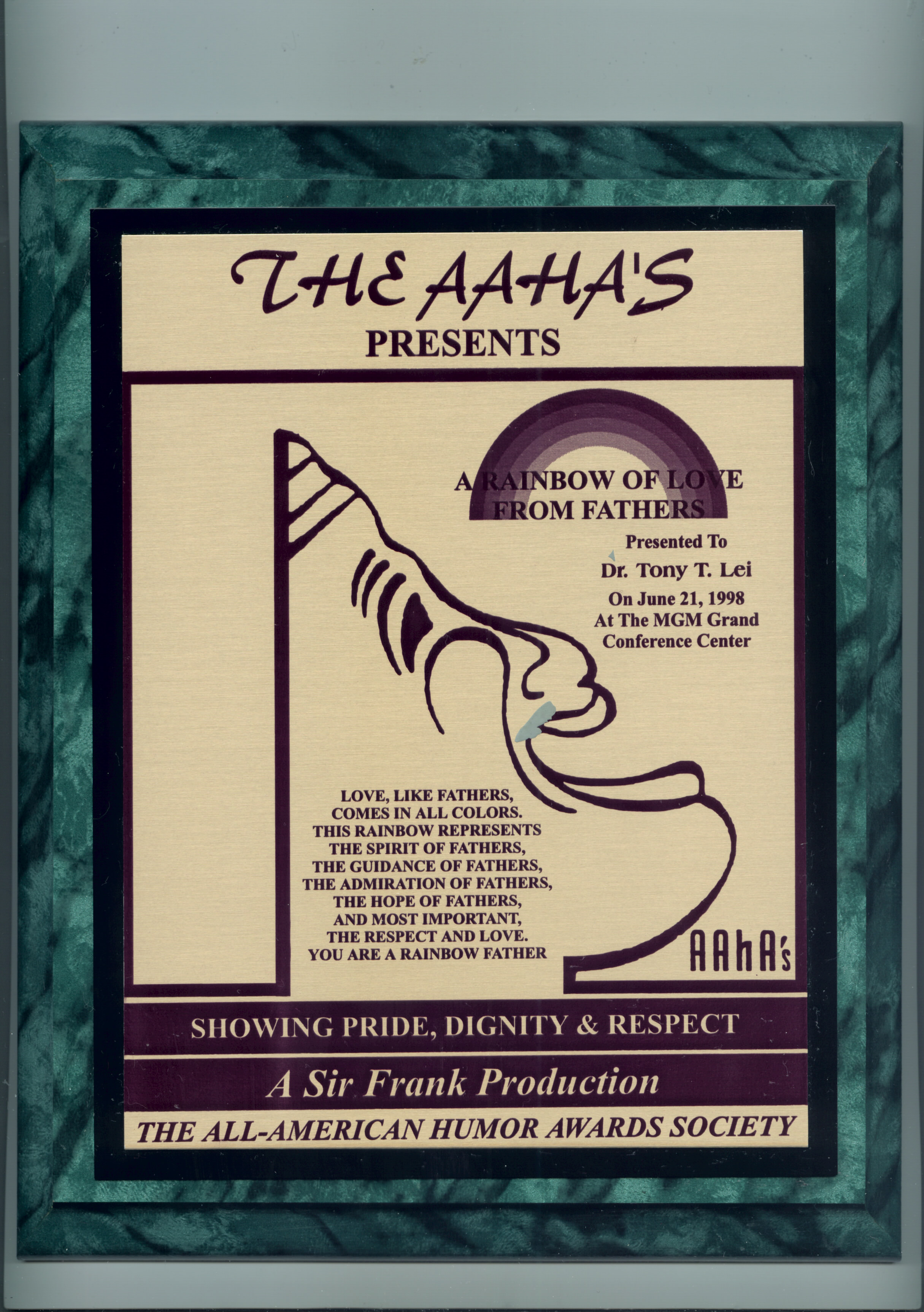 *It's our pleasure to pay a tribute to the above officials who dedicate to the civic and community service spects of our organization in an honorary or adjunct capacity.---------------------------------------- LVRJ/wbti: PPAA Forum 21 Wish you a very Happy Father's Day! --On this Father's Day, I have many things to be thankful for and to be proud about by PAI of WBTI*1 We are pleased to post the following happy father's day e-mail and trophy from John Lei and Mike Lei to Dr. Tony Lei: DEAR DAD, On (t)his Father's Day, I have many things to be thankful for and to be proud about.*2 I'm thankful I have a Dad who really cares about his family, a Dad who cares about the welfare of his children, a Dad who understands the importance of authority and love in a family, a Dad who cares about the financial stability of a family, a Dad who knows marriage is for a life-time, a Dad who treasures and loves his wife, a Dad who thinks more about the family than about his own career, a Dad who don't push his own agenda on his children, a Dad who values the freedom and individuality of his children, a Dad who looks for the best in his children, a Dad who fears God, a Dad who can laugh at his own mistakes, a Dad who can share his true feelings to the family, a Dad who spends more on other members in the family than himself, a Dad who values and treasures the love and words of his sons, and a humble Dad who can listen to the words of advice from his sons. I'm proud to have a Dad who kept the family together for over 30 years, a Dad who was a pioneer in business management in Taiwan, a Dad who wrote many books on management and leadership, a Dad who worked as a professor in higher education, a Dad who moved his family to a new country and raised 2 successful sons, a Dad who have many honors and accomplishments in education, academics, and community service, a Dad who loves God, a Dad who continues to model hardwork and perserverance, a Dad who doesn't give up when he meets challenges, a Dad who treats his family well, a Dad who is a leader with confidence and knowledge, a Dad who can be comfortable sitting with high level officials as well as talking with a waiter, a Dad who can continue to write articles everyday, and a Dad who can see how to build people up. Dad, God knows your heart and efforts. May He reward you richly and help you to continue to increase in your love for Him and other people.*3 With lots of love and thanks from your son, Mike ----------------------------------------------- Dear Dad, I wish you a very Happy Father's Day!!!*4 Thank you so much for all of your sacrifices for Mom, Mike and Me over these many years. God really blessed us with a wonderful Dad! On this special day, I want to honor you for your academic accomplishments, community services, books you authored, public honorary positions, WBTI Presidency, WBTI website, and most of all, your love for God and for our family. I remember the many times you encouraged me for school and work, which contributed to my academic and career successes. You also worked so hard to provide for our family. Thank you! I pray that God will bless you with abundant success this coming year and with good health. May you continue to seek and serve our Lord with all of your heart and mind. Celebrate this special day with joy!*5 Your Loving Son, John But seek first His kingdom and His righteousness, and all these things will be given to you as well. Matthew 6:33 ------------------------------------------------------- References *1. PAI of WBTI is the initial of Public Administration Institution of Washington Business and Technology Institute (WBTI). *2. Lei, Mike. 'On This Father's Day, I have many things to be thankful for and to be proud about,' "An e-mail to Dr. Tony Lei from John Lei," (June 17, 2004), Carrollton, Texas. *3. Ibid. *4. Lei, John. 'I wish you a very Happy Father's Day!!!' "An e-mail to Dr. Tony Lei from John Lei," (June 16, 2004), Las Gatos, California. *5. Ibid. ... ..... ....... | |