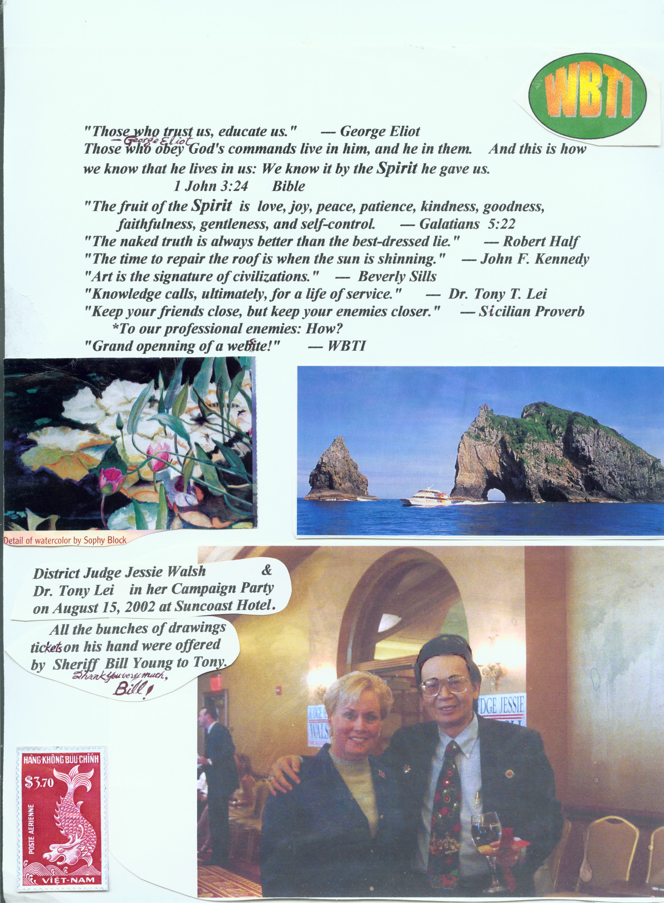 *****LVRJ/wbti: The SUN is full and red! It's shining brightly in the morning!! About 7 lovely doves are eating and playing under the large tree in our front yard!!! {092413-0537}LVRJ/wbti: Images for U.S. First Lady Madam Michelle Obama {092413-0557}LVRJ/wbti: Images for China's First Lady Madam Li-yuan Peng{092413-0537}LVRJ/wbti: Images for U.S. First Lady Madam Michelle Obama 3 - Community Link - Las Vegas Review-Journal communitylink.reviewjournal.com/.../DBPAGE=page...� Translate this page {092213-0537}LVRJ/wbti: Images for U.S. First Lady Madam Michelle Obama Images for Miss Doris Yu {092213-0557}LVRJ/wbti: Images for China's First Lady ... 15 - Community Link - Las Vegas Review-Journal communitylink.reviewjournal.com/.../DBPAGE=page&MODE=display&...� {072613-0537}LVRJ/wbti: Images for U.S. First Lady Madam Michelle Obama {072613-0637}LVRJ/wbti: Images for China's First Lady Madam Li-yuan Peng 2 - Community Link - Las Vegas Review-Journal communitylink.reviewjournal.com/.../DBPAGE=page...� Translate this page Sep 17, 2013 - BR>{072613-0537}LVRJ/wbti: Images for U.S. First Lady Madam Michelle Obama {072613-0637}LVRJ/wbti: Images for China's First Lady ... Washington Business and Technology Institute ... - Community Link communitylink.reviewjournal.com/.../DBPAGE=page...� Translate this page {082413-0537}LVRJ/wbti: Images for U.S. First Lady Madam Michelle Obama {082413-0557}LVRJ/wbti: Images for China's First Lady Madam Li-yuan Peng. PPAA Forum 21 - Community Link - Las Vegas Review-Journal communitylink.reviewjournal.com/.../dbpage=page&GID=01101010550...� by B Clinton {092313-0537}LVRJ/wbti: Images for U.S. First Lady Madam Michelle Obama {092313-0557}LVRJ/wbti: Images for China's First Lady Madam Li-yuan Peng. 4 - Community Link - Las Vegas Review-Journal communitylink.reviewjournal.com/.../DBPAGE=page...� Translate this page May 25, 2010 - {090313-0537}LVRJ/wbti: Images for U.S. First Lady Madam Michelle Obama {090313-0557}LVRJ/wbti: Images for China's First Lady Madam ... ************************************ {092413-0557}LVRJ/wbti: Images for China's First Lady Madam Li-yuan Peng PPAA Forum 21 - Community Link - Las Vegas Review-Journal communitylink.reviewjournal.com/.../dbpage=page&GID=01101010550... by B Clinton {092313-0537}LVRJ/wbti: Images for U.S. First Lady Madam Michelle Obama {092313-0557}LVRJ/wbti: Images for China's First Lady Madam Li-yuan Peng. Washington Business and Technology Institute - PPAA Forum 21 communitylink.reviewjournal.com/.../DBPAGE=page&MODE=display&... [On the top left is a picture of (LVRJ/wbti: Ali Mountain!)] . . . LVRJ/wbti: ÅíûæÂ - China's First Lady Madam Li-yuan Peng - ½É½ - YouTube! *****Washington ... ... ..... ....... ----------------------------------- LVRJ/wbti: Wendy Yu-Ping Wu received a Certificate of Recognition from Nevada Governor Kenny Guinn by Michael Douglas, Valerie Weber, Dr. Mu-yeh Morris Wu, and Tiffany Chang*1 "Under the recommendation of President Dr. Tony Tung-tien Lei, Ms. Wendy Yu-Ping Wu has received the Certificate of Recognition awarded by Nevada Governor Kenny C. Guinn on May 23, 2005. She was appointed Assistant Fellow of Public Administration Institution (PAI) and Chairperson of Interstate Business Cooperation and Development Council by Washington Business and Technology Institute (WBTI) on May 11, 2005." The announcement was made on Friday, May 27, 2005, by Dr. John Wang, Spokesperson for WBTI in Las Vegas, Nevada, U. S. A.*2 The following is the statement of the proclamation: [[[[[Office of the Governor Certificate of Recognition Awarded to Wendy Yu-Ping Wu Chairperson of the Taiwan Benevolent Association of America The State of Nevada congratulates you on your extensive assistance to the Taiwan Benevolent Association of America, and commends you for your dedicated service to the citizens of our Silver State. May 23, 2005 (Date) Kenny C. Guinn, Governor]]]]]*3 "It's really my great honor to receive such an elegant award. After the Certificate of Recognition awarded by Nevada Governor Kenny Guinn, I'll endeavor enthusiastically my effort and wisdom of the service to all the citizens, residents, and visitors of our Silver State - Nevada through venues such as a faculty member of Washington Business and Technology Institute (WBTI), among others," said Ms. Wendy Yu-Ping Wu in San Jose, California after she was informed by President Dr. Tony Tung-tien Lei about the awarding through the phone call and WBTI website at http://communitylink.reviewjournal.com/lvrj/wbti by Las Vegas Review-Journal. The Second 27th Director and Advisory Boards Meeting of Taiwan Benevolent Association of America (TBAA) was held by its President Wendy Yu-Ping Wu successfully on April 23, 2005 in Las Vegas, Nevada. With her distinguished leadership and outstanding talents, Wendy Wu is widely known as a teacher, advisor, social service volunteer, business person, and community leader with a series of venues to contribute to our people, community, businesses, government, and nation. In her service as the chairperson of the 26th Taiwan Benevolent Association of America Conference/ Convention in 2003 (held at San Jose, California), her superb managerial skills and experience had orchestrated one of the most successful nation-wide conventions / parties in recent years. In addition, Ms. Wendy Wu is also a well-respected contributor in another non-profit organization, which is known being one of the largest Asian American service groups, serving as the 17th president, Taiwanese American Chamber of Commerce - North California (TACC-NC). In her service in the TACC-NC, she has broken the organization's record of making donations to both local and world-wide charity organizations, in both the number of benefited charity organizations and the total monetary value.*4 Very soon, Ms. Wendy Wu is going to complete her term as President of the Taiwan Benevolent Association of America (TBAA) on July 30, 2005. Out of the excellent experience