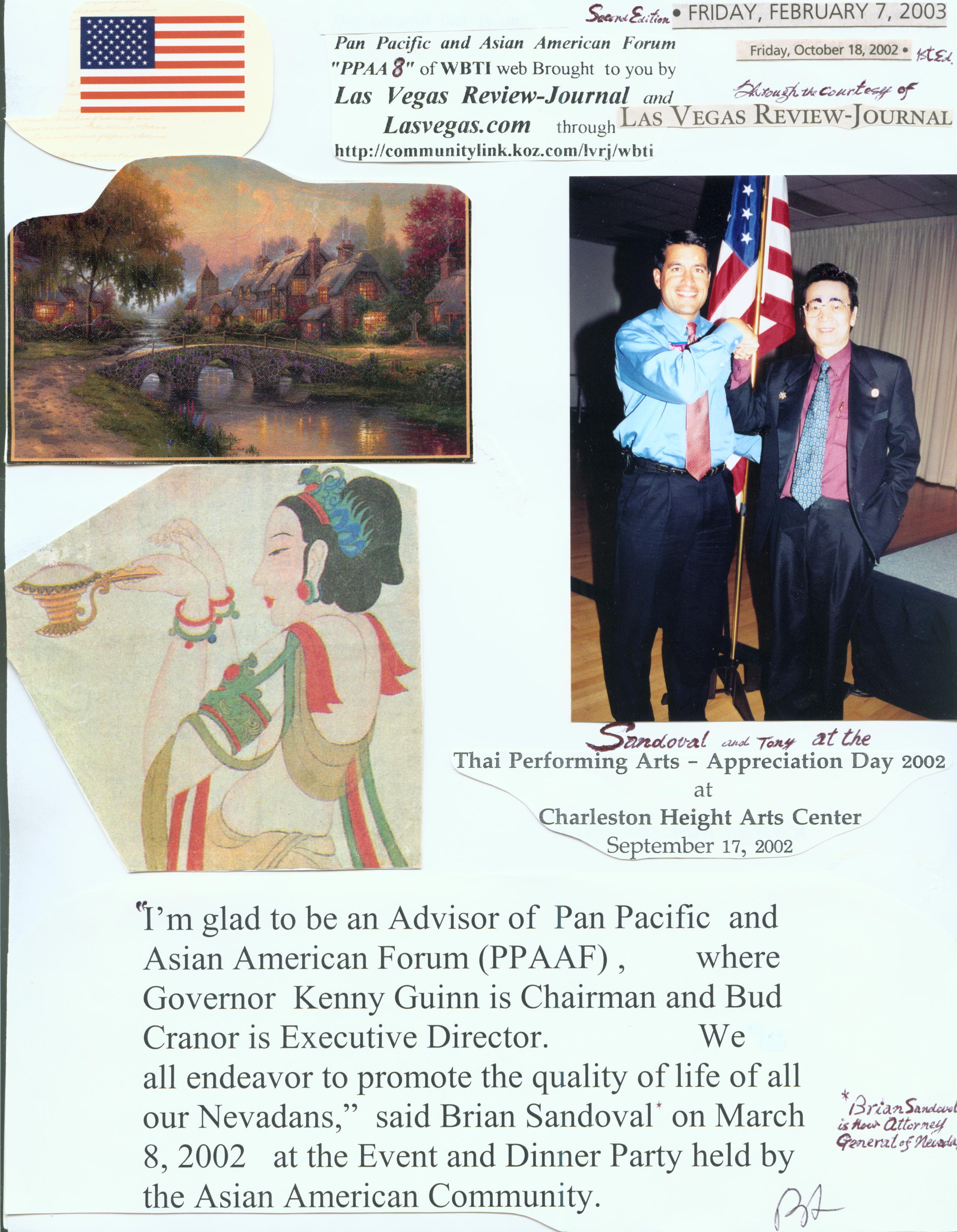 Successful and innovatory practice of community service by WBTI! --A special tribute To U.S. Senator Honorable Harry M. Reid in becoming the Majority Whip of U.S. Senate! by Tiffany ChangOn Last Friday May 25, Nancy Diaz, Repesentative for U.S. Senator Harry M. Reid confimed with Dr. Tony T. Lei, President of Washington Business and Technology Institute (WBTI) that the Senator's office has agreed with WBTI to hold a grand celebrating party in August for Harry. The party will be hold under the unifying by WBTI with CAN-DO, ACC, and among others. Special guests will include VIP from Nevadan high ranking officials, scholars and experts, business owners, and organizational leaders, with WBTI's faculty and members of Advisory Board as their basic resources. The decision has been made after Diaz's trip to the Senator's Office in Washington D. C. and the outstanding and successful practice of the event for the Chief Justice of Supreme Court Nancy Becker by WBTI on May 23, 2001. The theme and function of the coming August event for our Senator is A Special Tribute to U.S. Senator Honorable Harry M. Reid in becoming the Majority Whip of U.S. Senate. The Keynote Speaker is U.S. Senator Harry M. Reid. Guests of Honor in scheduling are U.S. Senator John Ensign, U.S. Congresswoman Shelley Berkley, Nevada Attorney General Frankie Sue Del Papa, and Las Vegas City Mayor Oscar Goodman. Special Guests already scheduled include: Dr. Roy Adamson, Nancy Becker, Lisa Brown, Terry Care, Radha Chanderraj, Dr. Sue Fawn Chung, Mark Denton, Michelle Leavitt-Fitzpatrick, Robert Gronauer, Nadia Jurani, Jerry Keller, Erin Kenny, Mary Kincaid, Betsy Kolkoski, Myron Leavitt, A. William Maupin, Lynette McDonald, Cheryl Moss, Cynthia Steel, Dr. William Thompson, Natalie Tyrrell, Valorie Vega, Lillian Wallace, Jessie Walsh, Myrna Williams, Dr. Linda Young, Ann Zimmerman, and among others. Chairpersons in contacted are Raj Chanderraj, M.D., Supatra Chemprachum, James Chen, James Cho, Bashir Chowdhry, Romeo Jurani, Vivienne Kerns, Steve Kwon, David Lee, Ph.D., Tony T. Lei, Ed.D., Art Macaraeg, Ann Melton, Long Pham, R. D. Prabhu, M.D., Kate Torres-Recto, Judi Rock, Tonie Sison, Frank Tsou, Joey Villaflor, M.D., Rita Vaswani, Roddy Wong, M.D., Tim Wong, James Yu, and among others. Hosts are welcomed and to be announced. If you are interested to be a chairperson or host for this event, please call Dr. Peter Lok at 732-0178 before June 30th. The landslide success and victory of the Event held by WBTI for Justice Nancy Becker was a significant accomplishment of our Asian American community in Nevada. We had so many high ranking officials from the political and judicial area of Nevada together with the participating characters from the offices of our four representatitives of Nevada for the Washington Scene: Harry Reid, John Ensign, James Gibbons, and Shelley Berkley. The Guest of Honor was Grant Ashley, Special Agent in Charge, FBI. The Presentation Guest was Bud Granor, Southern Nevada Director for Governor Kenny Guinn. Special guests included most of the famous persons on the list of the previous second paragraphy ( where Lillian Wallace was not shown), plus Bert Brown, Michael Cherry, Michael Douglas, Nadia Juradi, Robert Lueck, Nancy Saitta, Jennifer Togliatti, and among others. Dr. Tony T. Lei, the main found raiser of this dinner party and Chairman of the Event spoke to thank Nancy Becker for agreeing with him to hold the event by WBTI three months ago. He thanked also Dr. Peter Lok's diligent and effective work performance for this party. Dr. Lok received an award from Nancy duirng the party. Finanlly, Dr. Tony T. Lei thanked heartily all the special guests, hosts, participating guests, and a host of friends in the party and event. After announcing the name list of the Faculty of Public Administration Institution (PAI) of WBTI, he introduced Nancy Becker and invited her to deliver a speech. Nancy performed a marvelous speech with good apperance and achieved content. Faculty memmbers of PAI with its Director and Fellow Dr. William Thompson were installed. Cranor was introduced by Dr. Joey Villaflor to speak. Bud Cranor is Director of the Las Vegas Office of Governor Kenny Guinn, who praised the accomplishment of community service by Dr. Tony T. Lei and all our Asian Americans in Nevada. The highlight of this event is the presentation by Bud Cranor of the Speicial Award of Outstanding Community Involvement to Dr. Tony T. Lei given by Governor Kenny Guinn. Thunder of applause in the great hall of Harbor Palace Seafood Restaurant with more than one hundred fifty of attendants from government, business, academic, and professional expertises brought an enjoyable and pleasent reunion as long as three hours. Most of the people participated with their friends in the dinner and party were hesitated to say farewell. Harry loves heartily our country, our people, and our community. He wishes us to enjoy working together. United we stand, devided we fall. Together we can GROW (Go Reach Our World). Knowledge calls, ultimately, for a life of service. We are happy to continue to work for the prosperity and healthy of our society more effectively through mutual coorperation and trust. "It's our creative mission of WBTI for community service: to pay special tribute to those people who have contributed successfuly to our people, community, and country," said Dr. Tony T. Lei! {{{--On "Nevada Examiner" in June 2001}}} | |