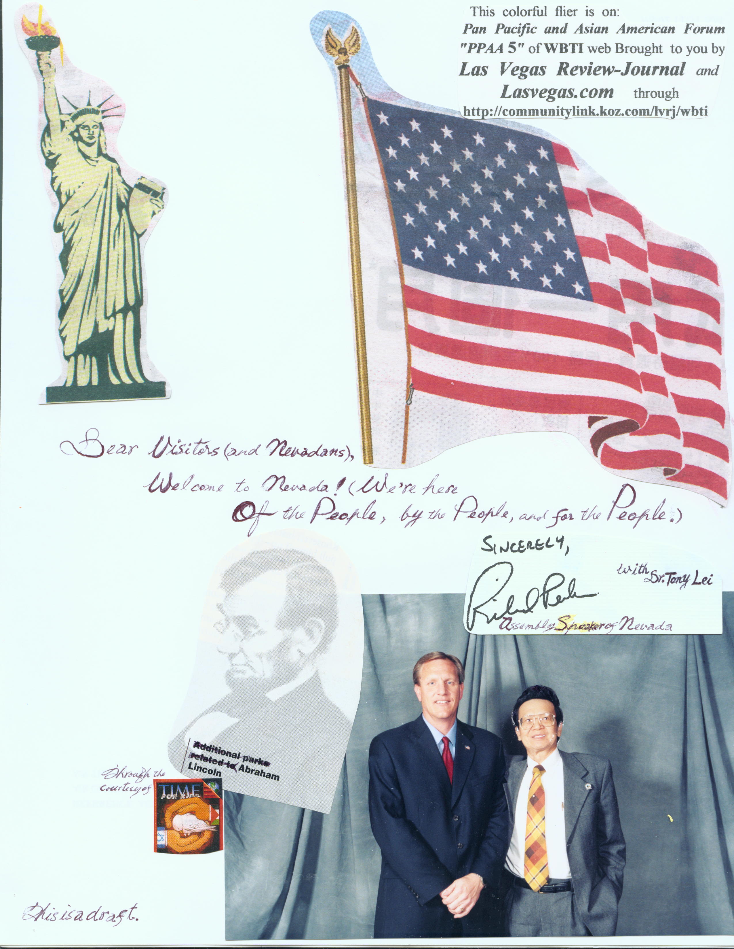 On September 28, 2001, WBTI established Pan Pacific and Asian American Forum (PPAAF) to pay a special tribute to U. S. Secretary of Labor Elaine Chao. The Forum has been published as one of the famous sections of WBTI website. It is bought to you by Las Vegas Review-Journal and lasvegas.com through http://communitylink.reviewjournal.com/lvrj/wbti. On March 4, 2002, WBTI have received Awards from U.S. Senator Harry M. Reid, Nevada 28th Governor Jim Gibbons, U.S. Congresswoman Shelley Berkley for its outstanding accoplishment of the presentation and publication of PPAAF. U. S. Secretary of Labor Elaine Chao has been recommended and honored by many high-ranking officials, educational administrators, business owners, and community leaders of Nevada as the Chairperson of WBTI.