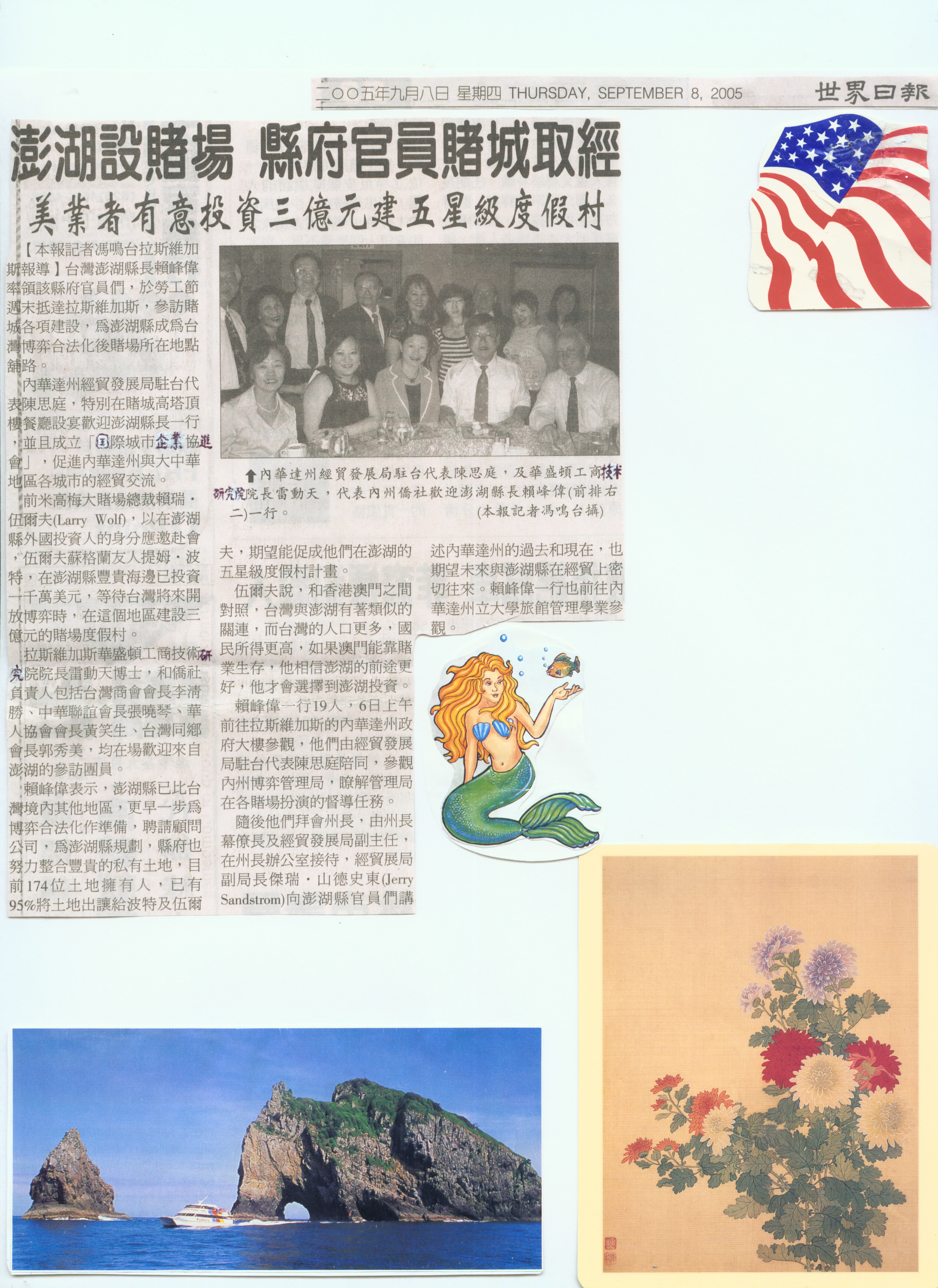 092305-6768 *** The following report in Chinese about Magistrate Feng-wei Lai 's visit to Nevada was published by "World Journal" (世界日報) on September 8, 2005: |